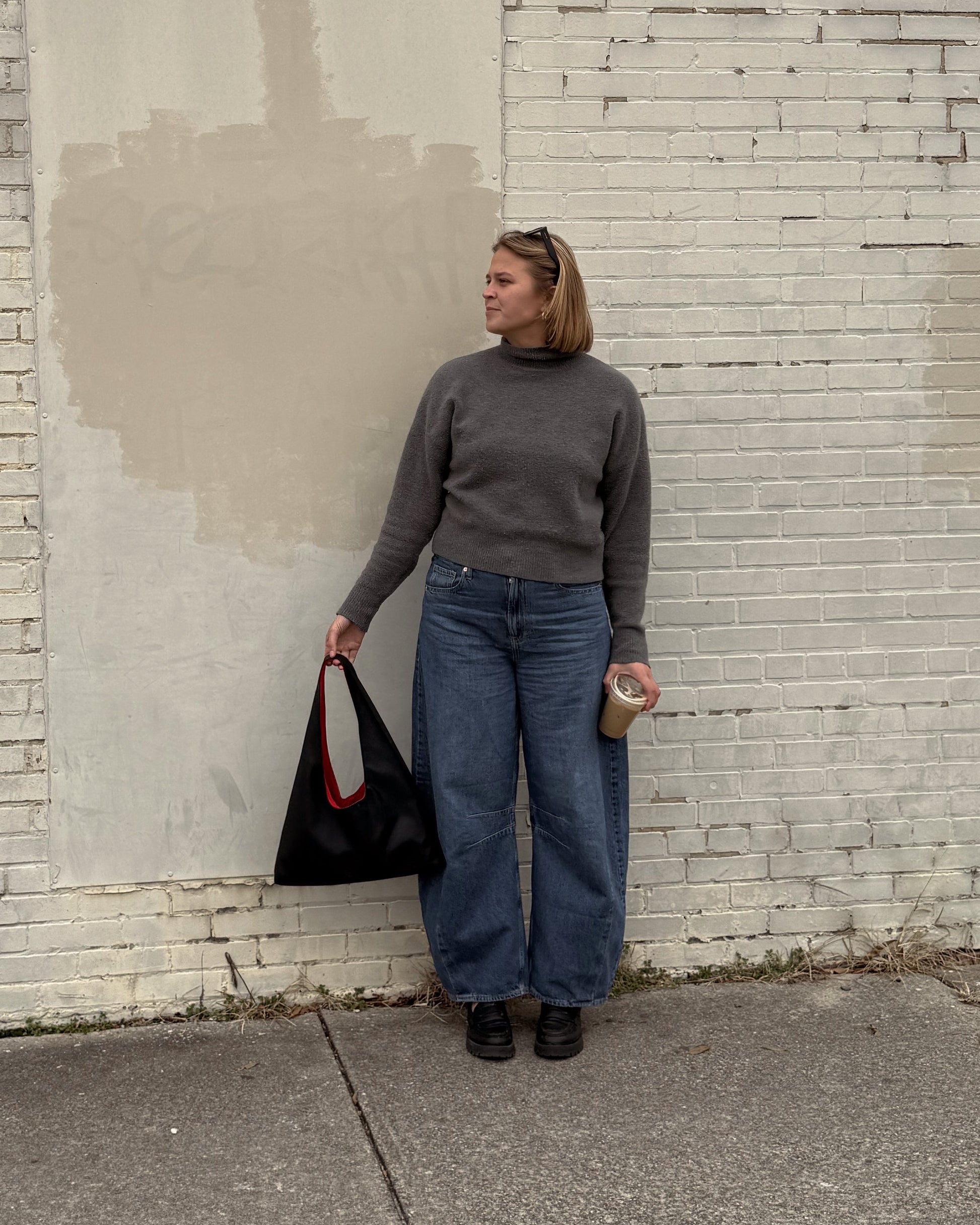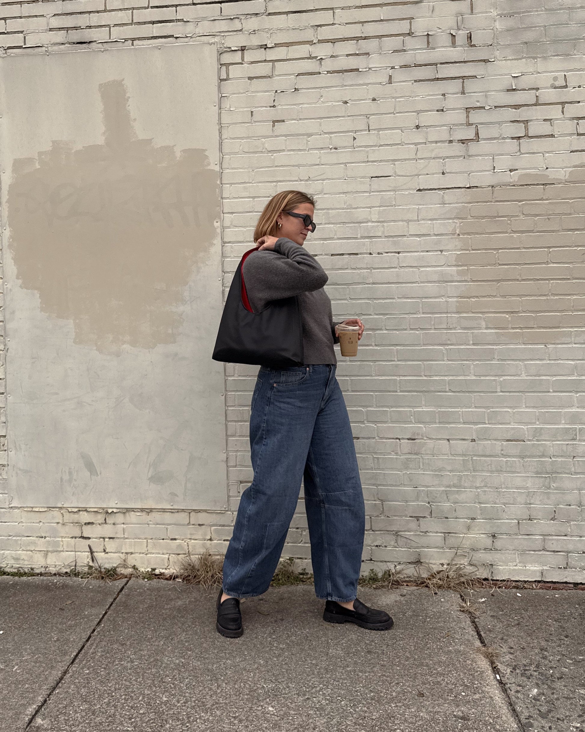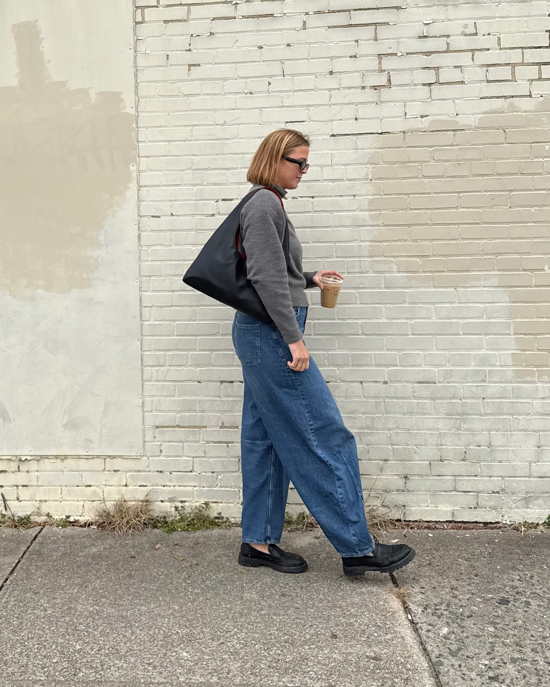 A classic, elevated tote, featuring an interior pocket. Made from recycled faux leather with red cotton lining.