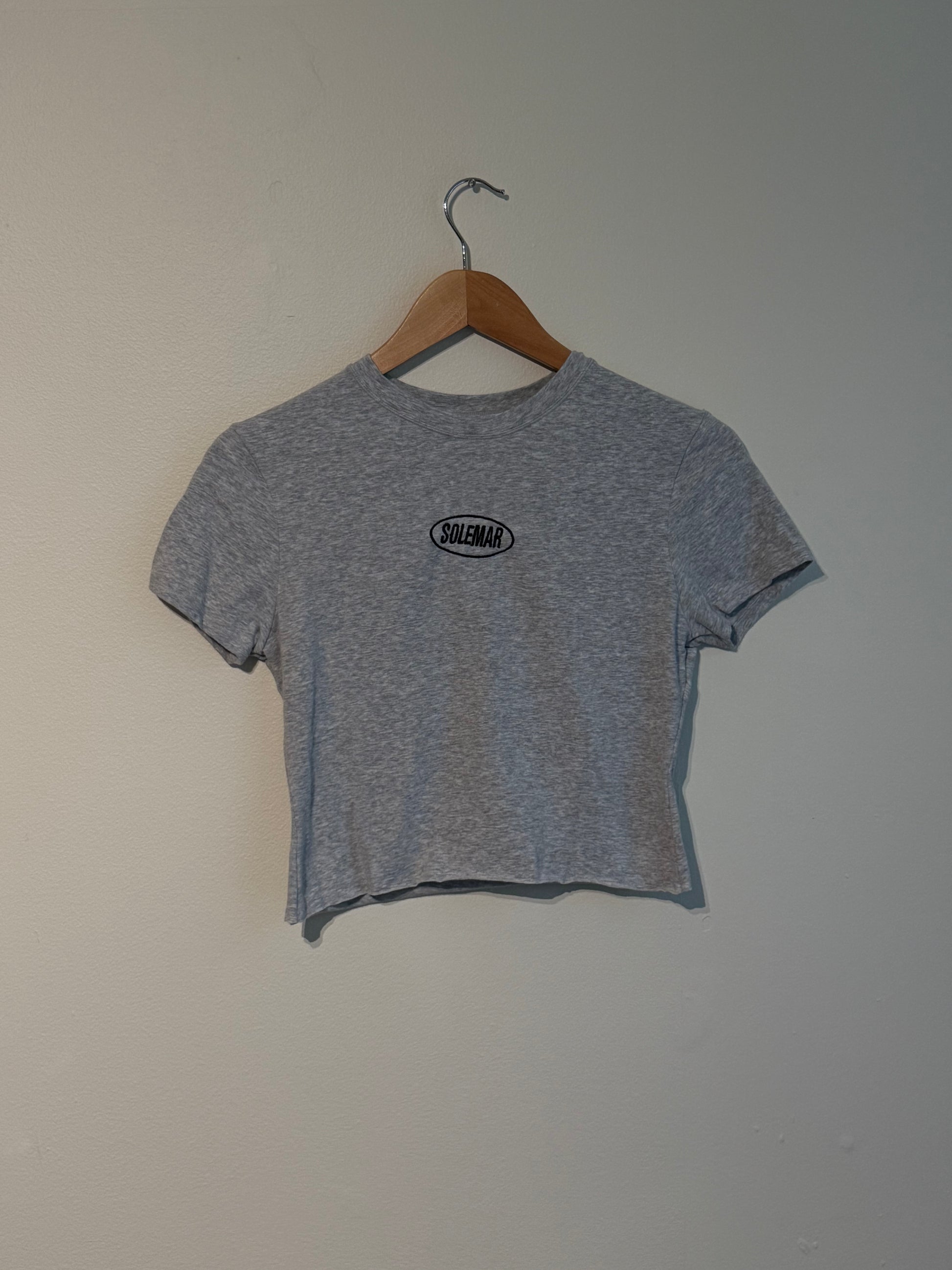 This tan tee features the SOLEMAR embroidered in white, and is a 1 of 1 made from an upcycled T-shirt.