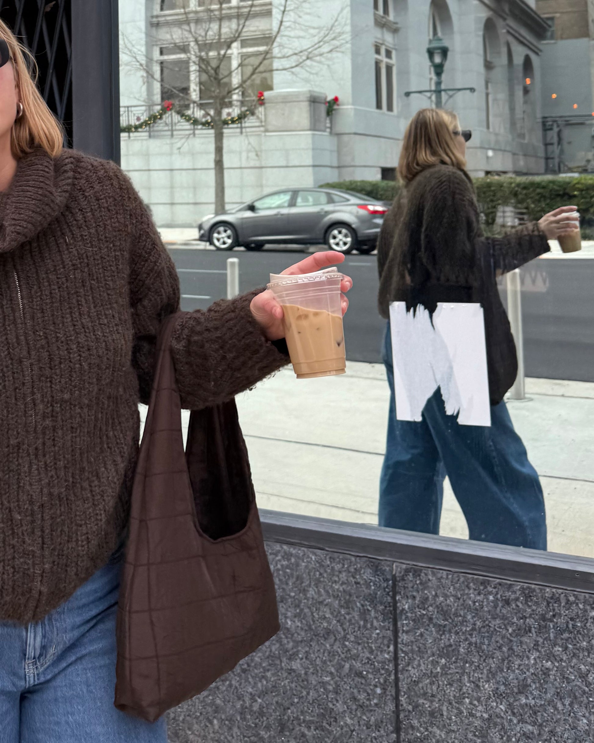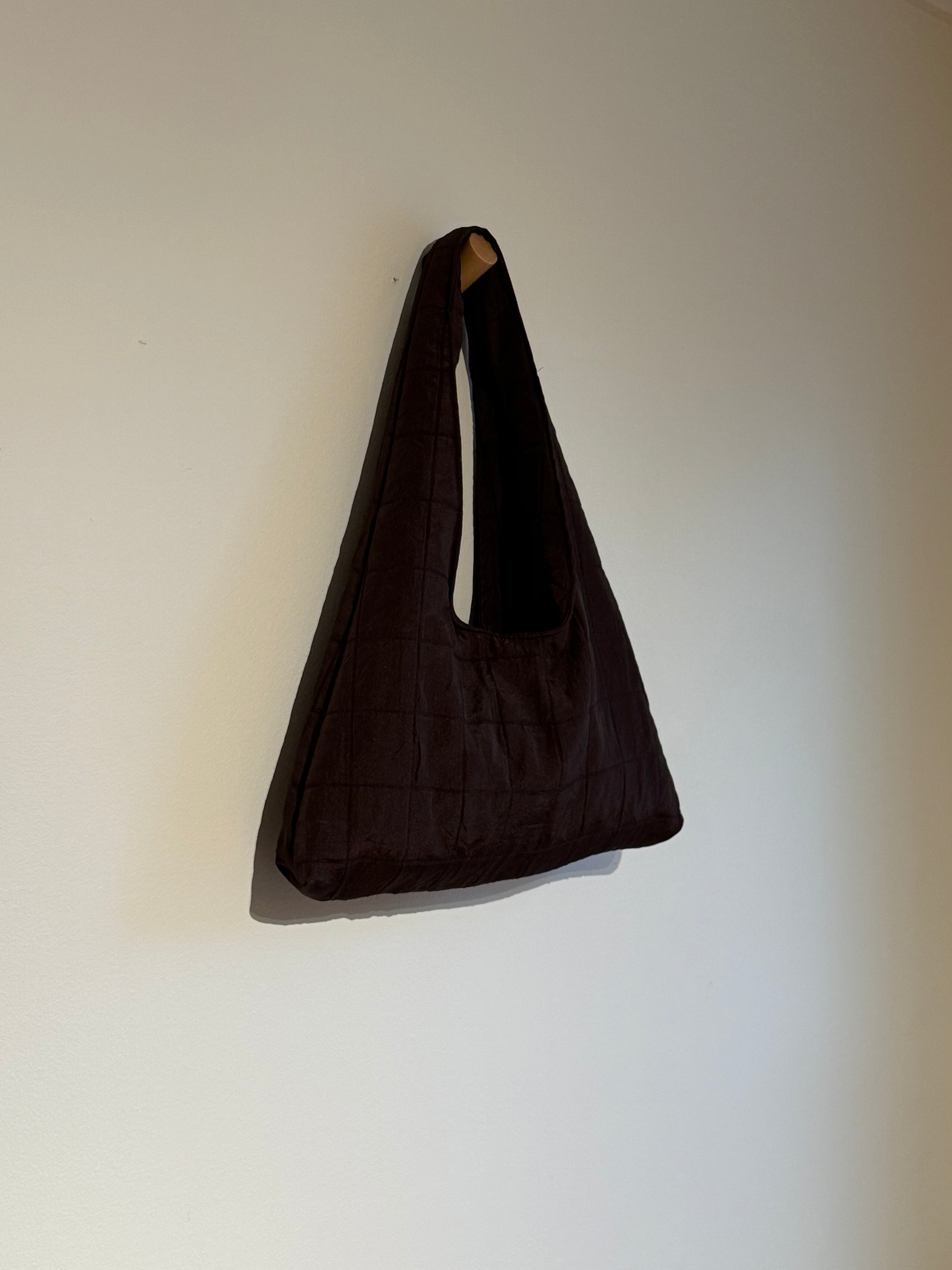 This everyday tote does it all. Made from a recycled curtain in dark brown, it's designed to last with added batting for structure and comfort. Featuring an interior pocket to keep your essentials organized and secure.