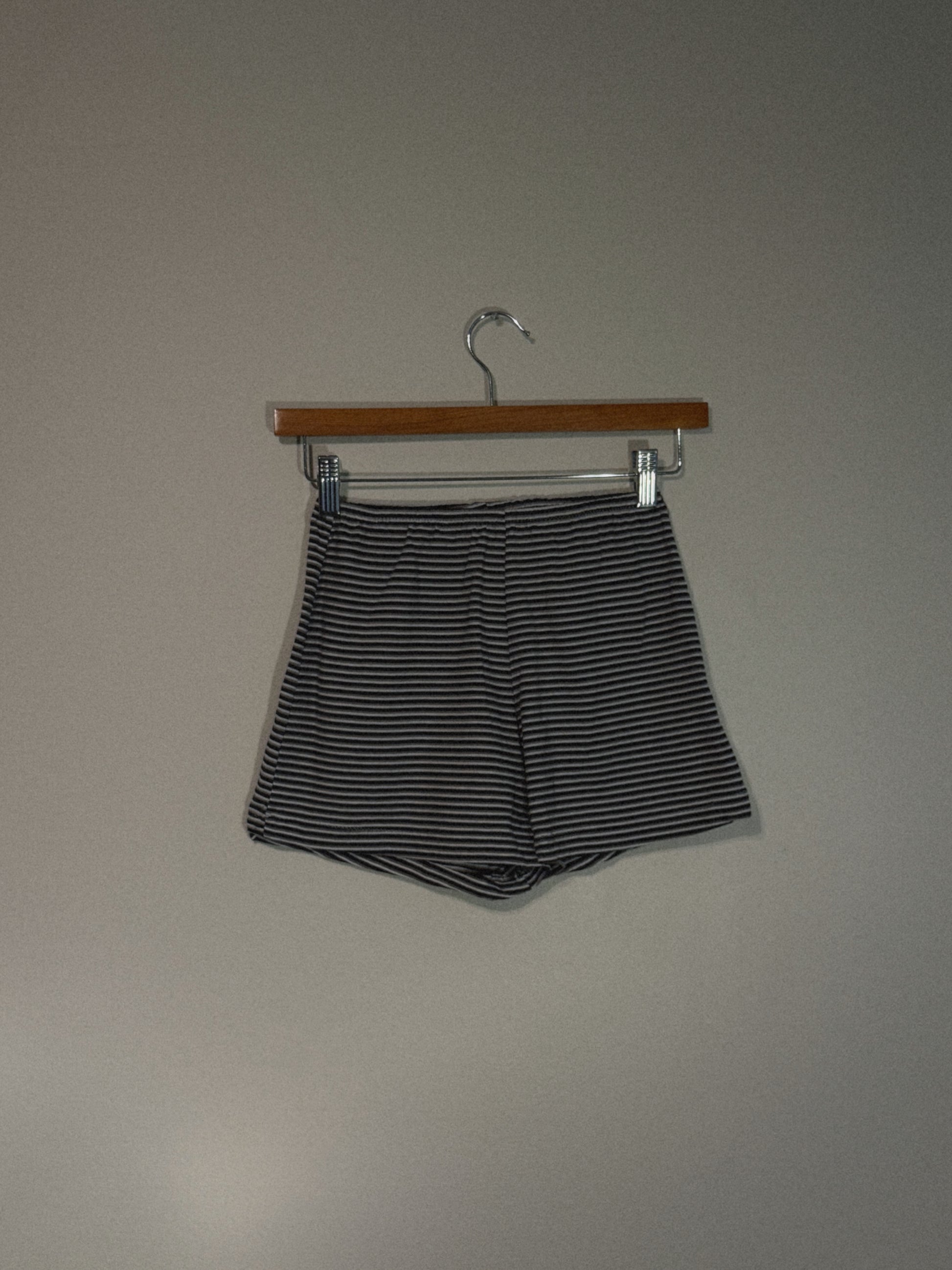 Chica Micro Shorties in Black, Grey, and White Mini Stripes