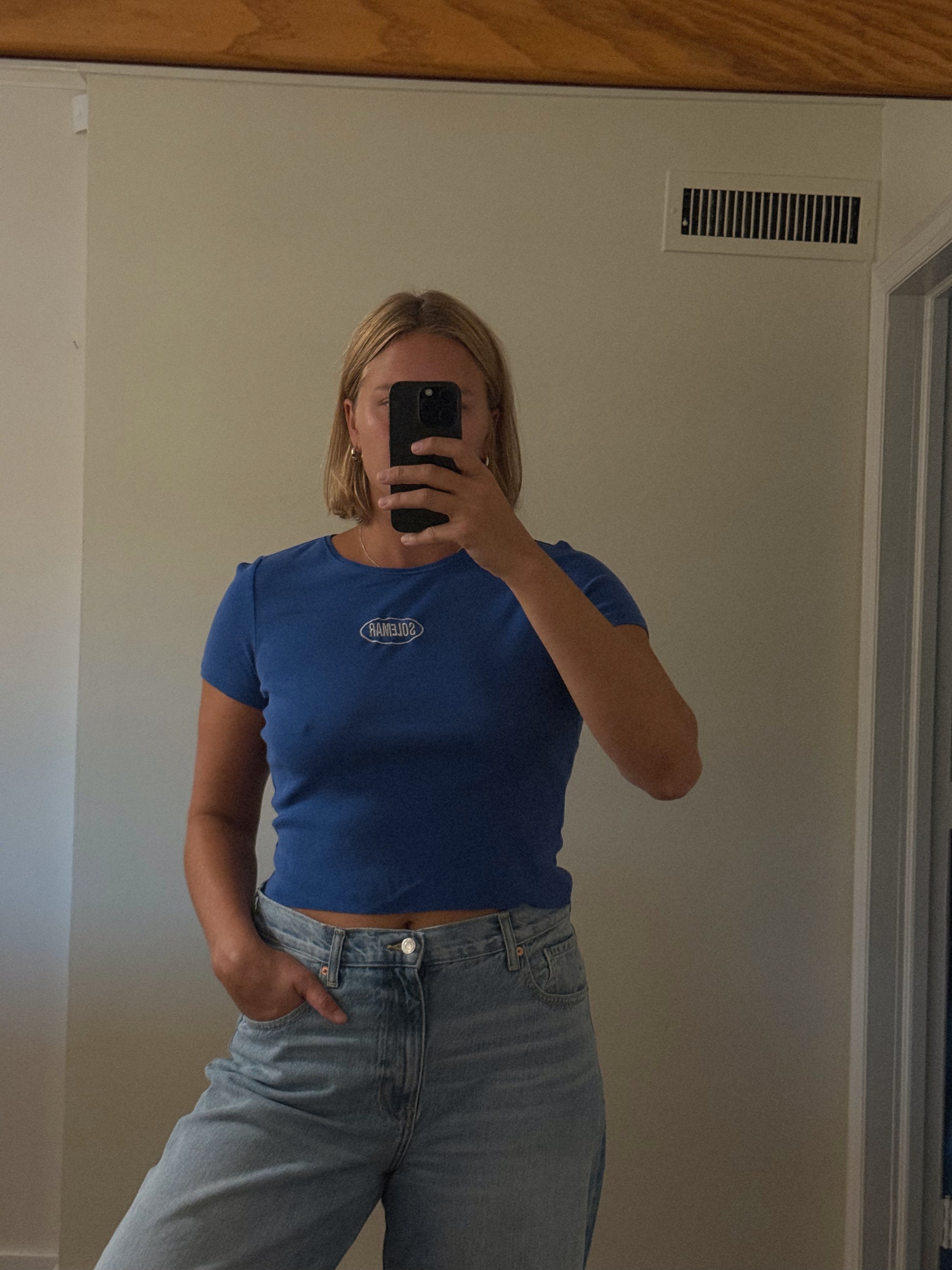 This shirt is an upcycled piece. By shopping at SOLEMAR HANDMADE, you are purchasing a 1 of 1, unique and exclusive item, supporting a small business, and saving garments from ending up in a landfill.