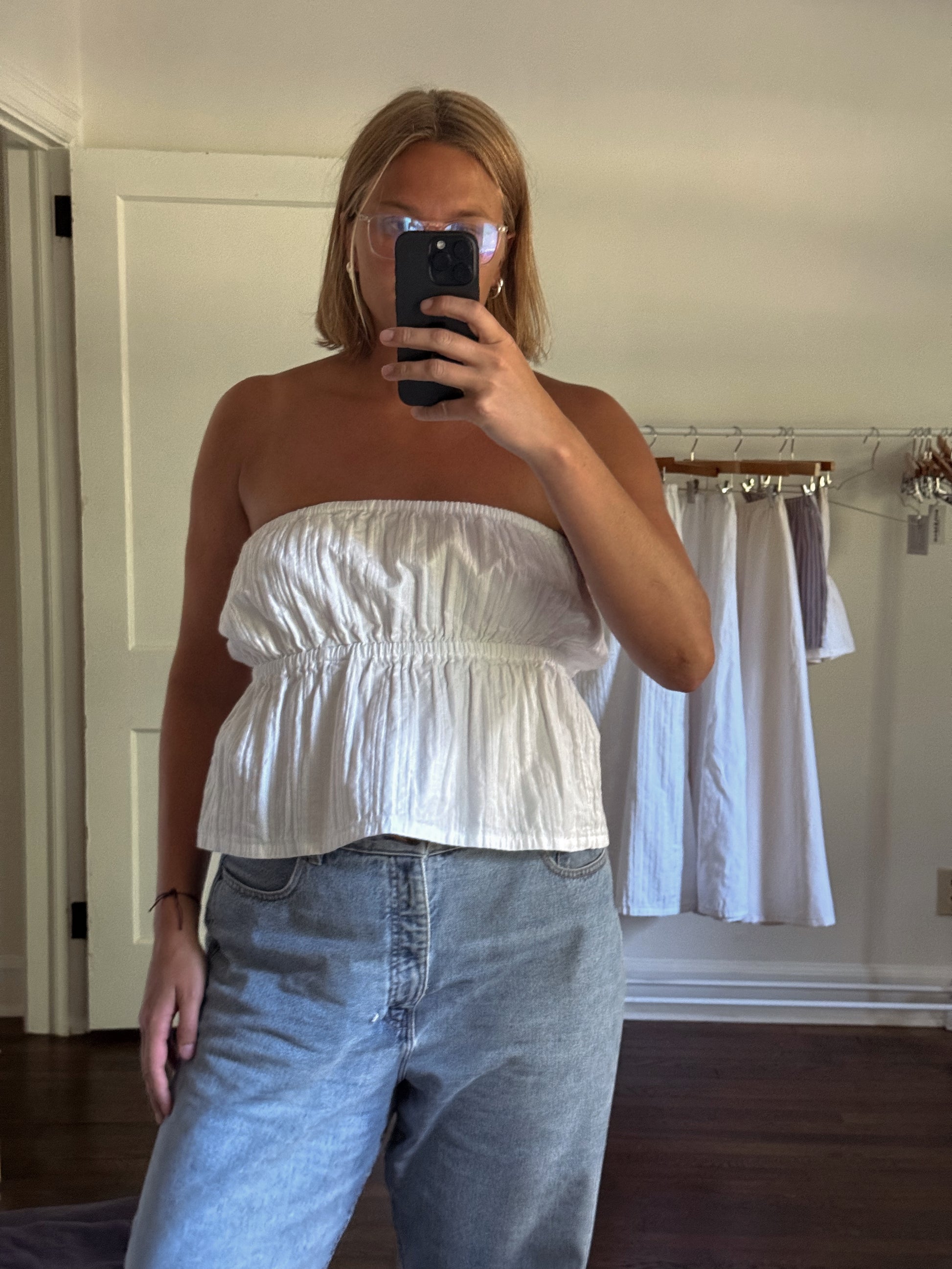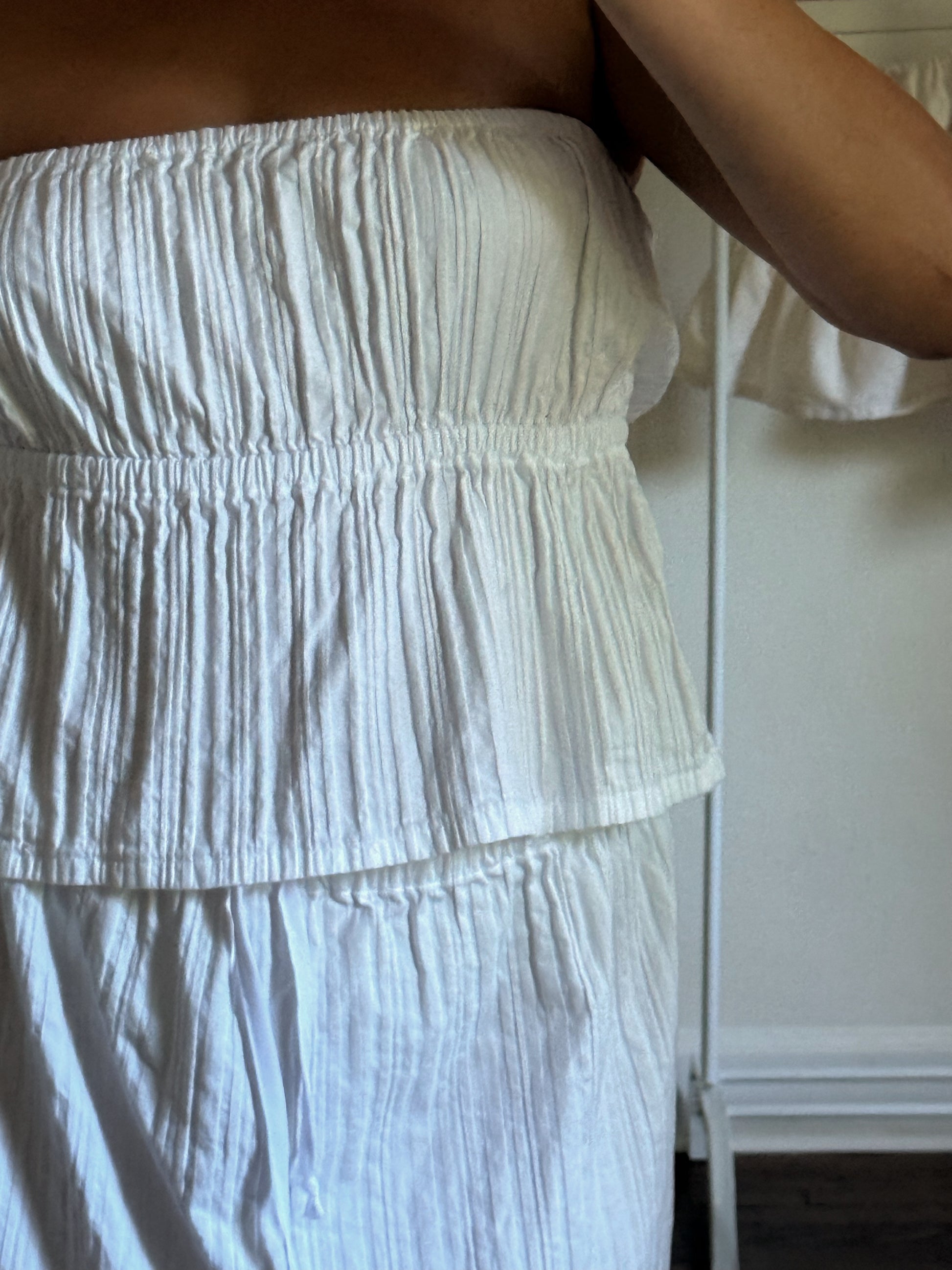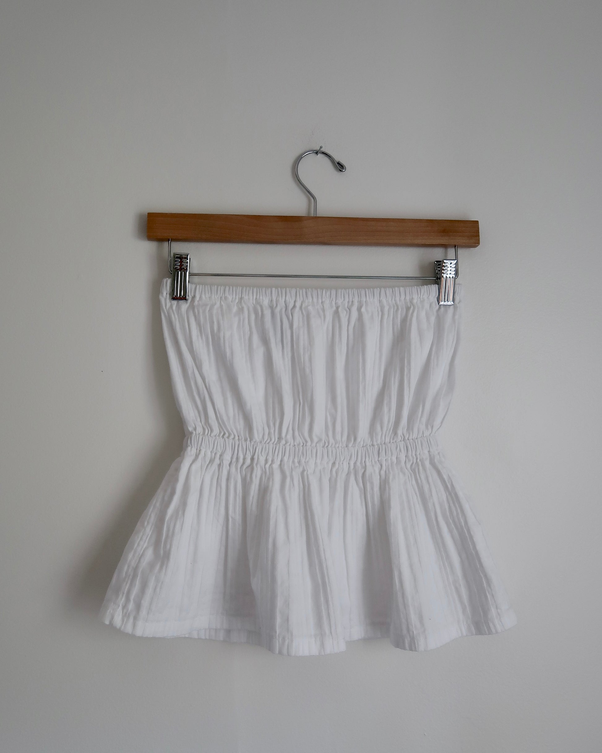 The Puff Tube in White Raised Stripes is crafted from an upcycled duvet coverlet fabric, delivering a lightweight and breathable garment. Featuring dual elastic bands, it ensures a secure and comfortable fit that adapts throughout the day. Its breathable construction not only enhances comfort but also introduces a subtle casualness. Designed for everyday versatility, this piece seamlessly combines timeless design principles with functional comfort, offering a refined yet effortless aesthetic.