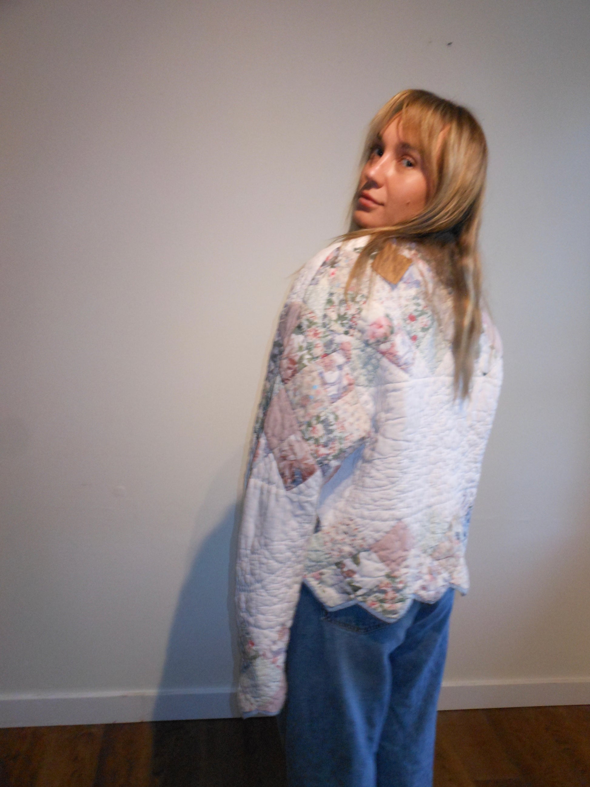 This jacket is an upcycled piece**. By shopping at SOLEMAR HANDMADE, you are purchasing a 1 of 1, unique item, supporting a small business, and consuming less textile waste.