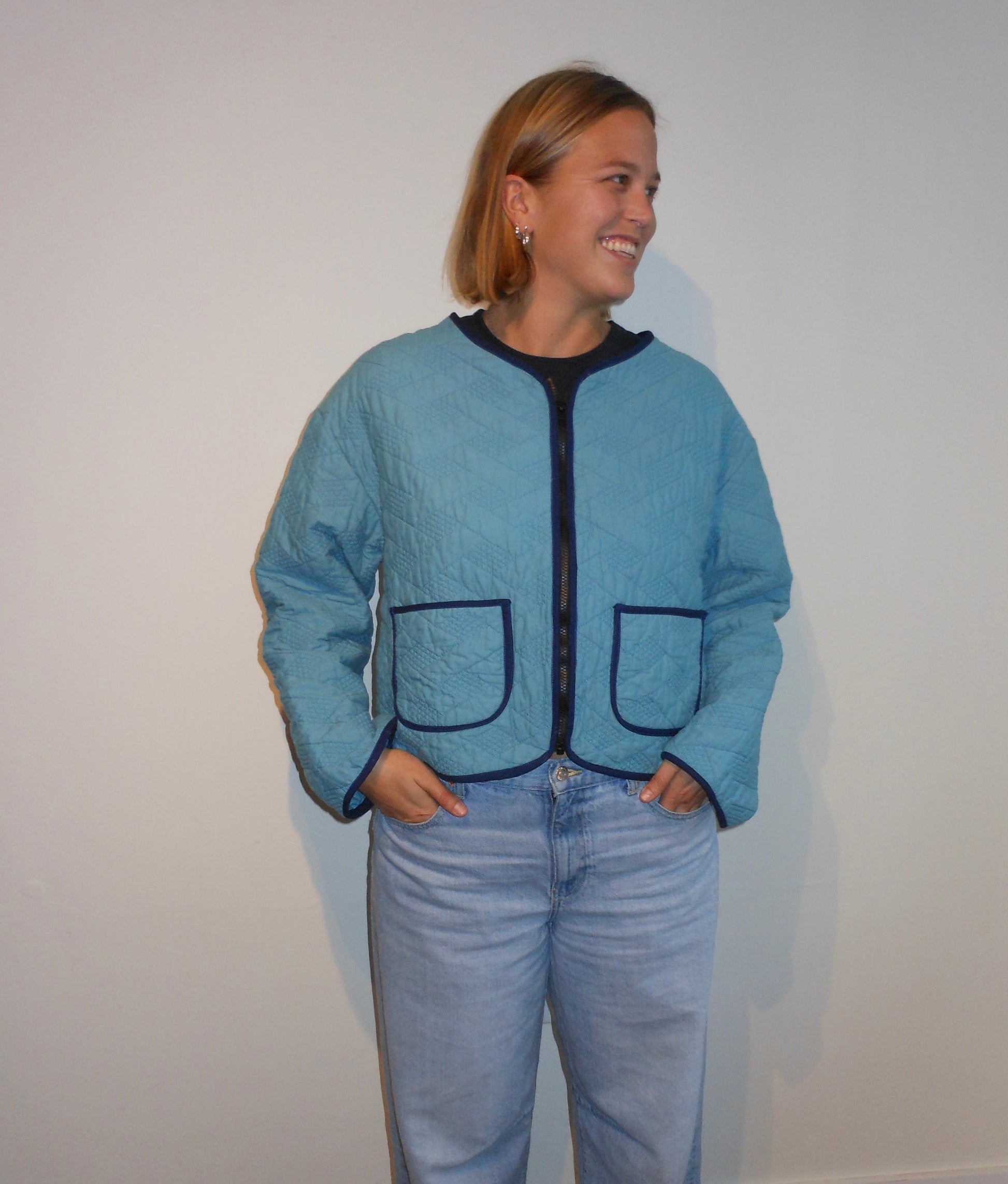 Quilted Jacket in Blue with Zipper