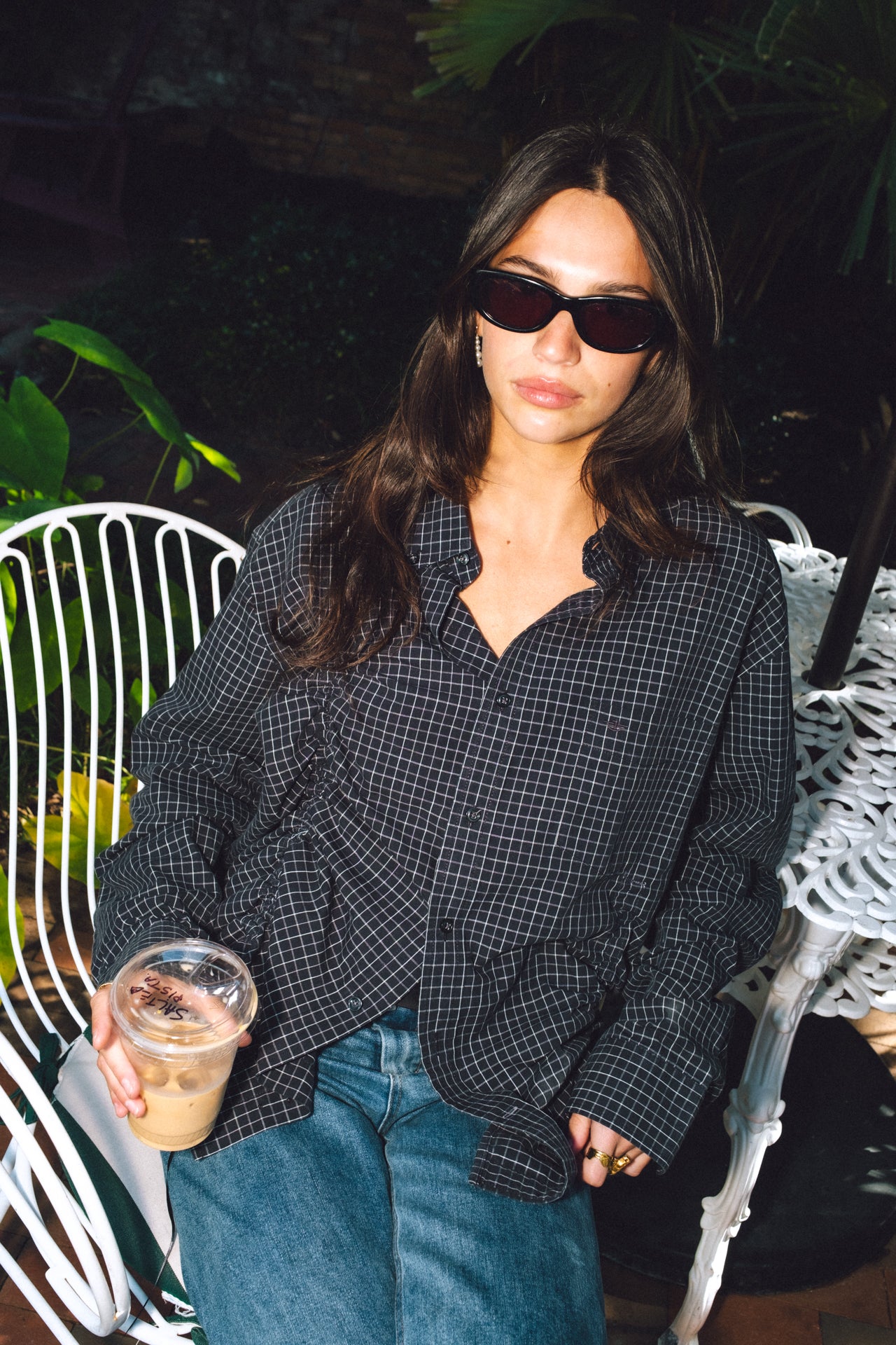 Reworked Button Down in Black Plaid with Adjustable Ribbons.