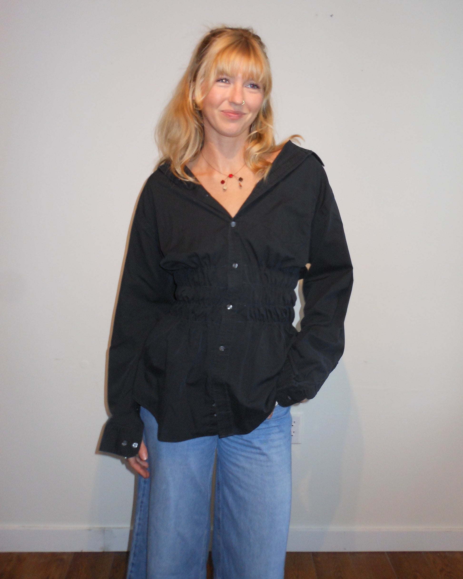 Suggested size Medium, but can fit Sizes SM-XL. All reworked button downs are meant to be oversized, and fit most sizes.