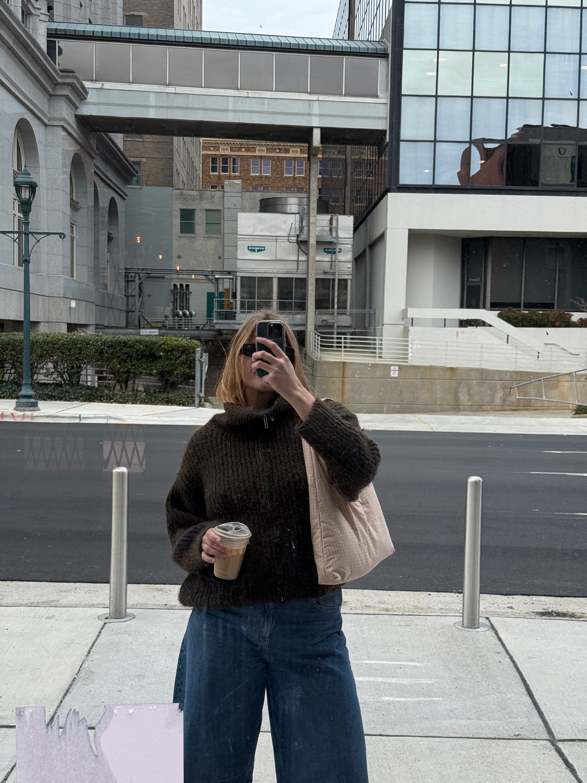 Salmon Squares Triangle Tote