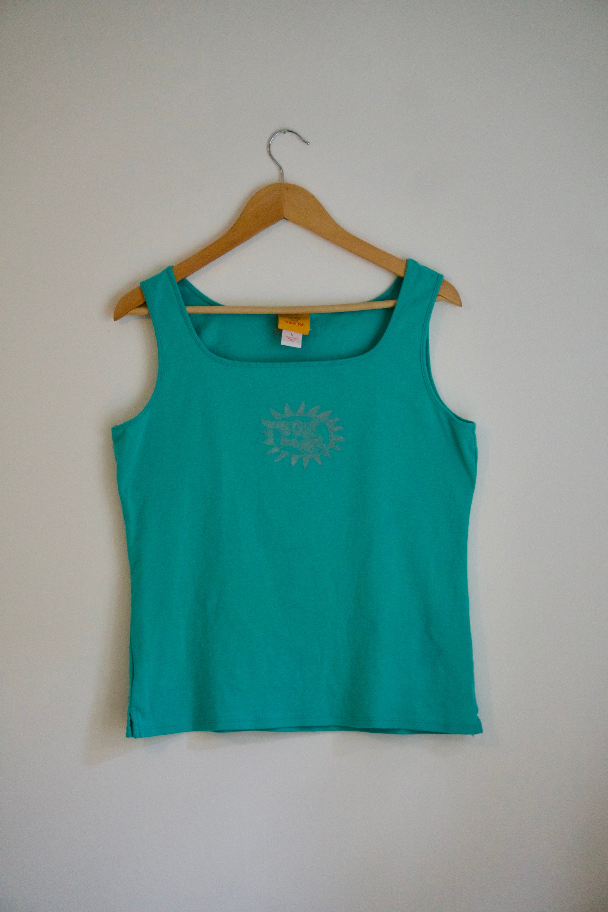 Size Large SOLEMAR Sun Stamped Tank in Aqua